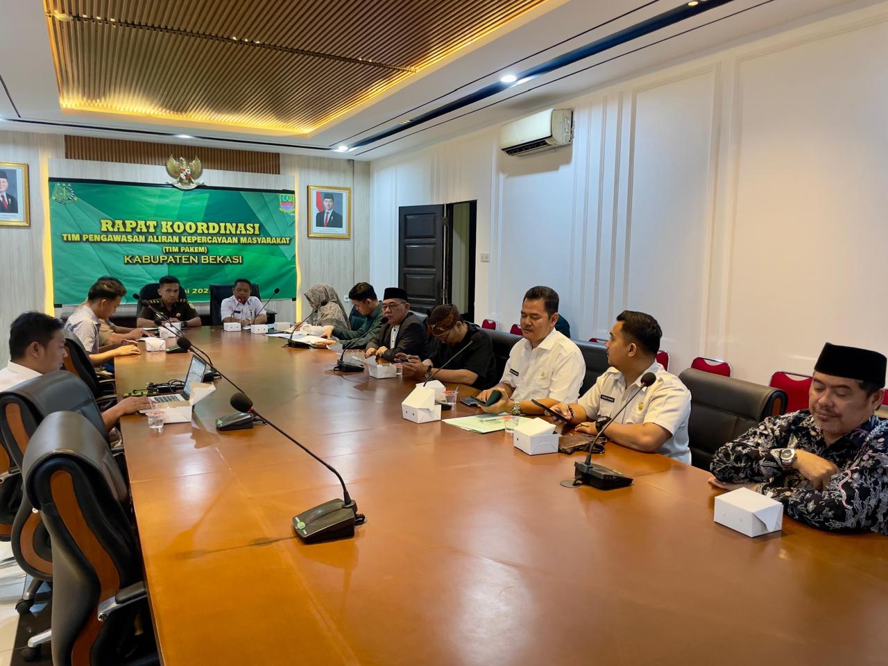 BEKASI, NUSANTARA SIBER NEWS – Tim Koordinasi Pengawasan Aliran Kepercayaan dan Aliran Keagamaan dalam Masyarakat (PAKEM) Kabupaten Bekasi, yang diketuai oleh Kejaksaan Negeri Kabupaten Bekasi dan melibatkan unsur Pemerintah Daerah, kembali menggelar rapat koordinasi di Gedung Bupati Bekasi pada Rabu (18/06/2025).