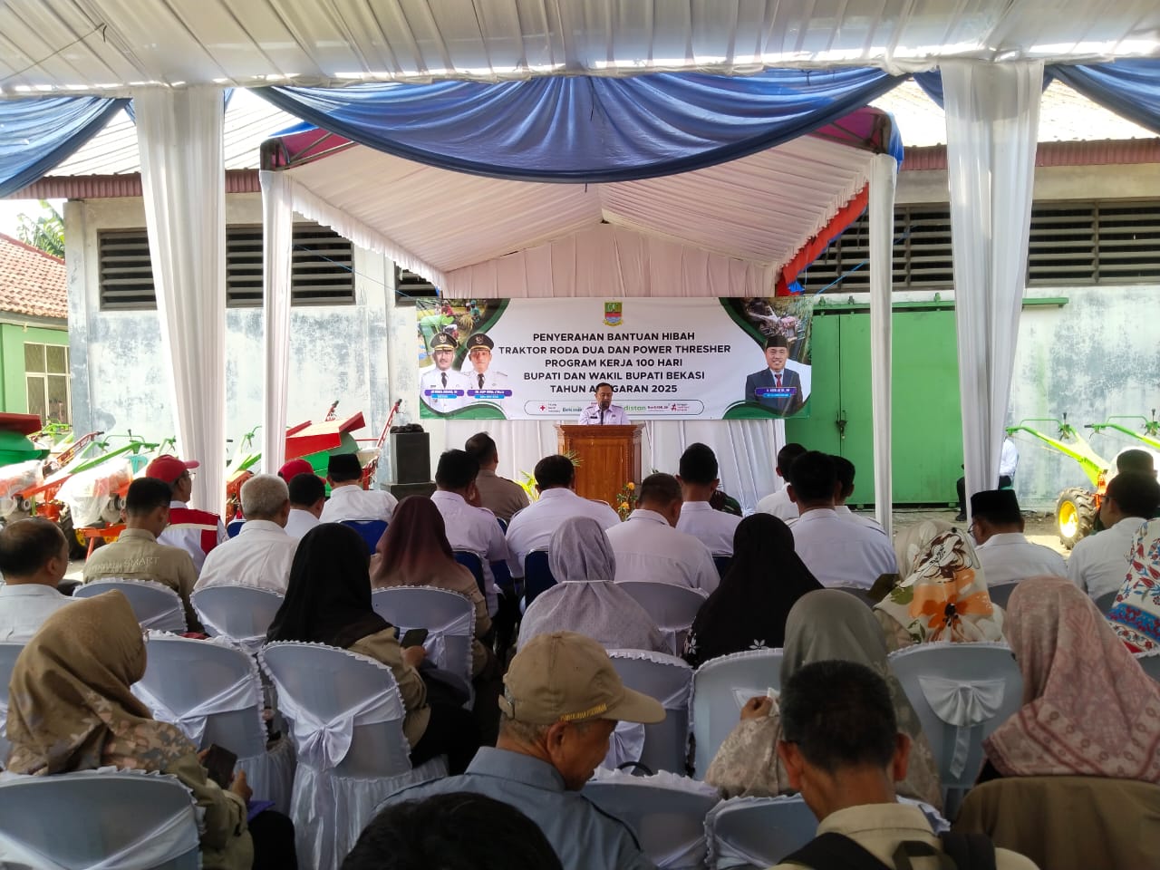 Acara berlangsung di Gedung Alsintan, Dinas Pertanian Kabupaten Bekasi, dan dihadiri berbagai unsur penting seperti Forkopimda, para camat, Muspika, Wakapolres Bekasi Kompol Apri Fajar Hermanto, para Penyuluh Pertanian Lapangan (PPL), Gabungan Kelompok Tani (Gapoktan), serta perwakilan dari PMI dan Baznas Kabupaten Bekasi.