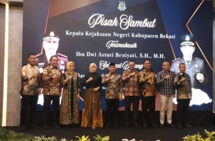 Bupati Bekasi, Ade Kuswara, mengapresiasi kontribusi Dwi Astuti selama menjabat dan menyampaikan harapan besar kepada Kajari yang baru, Eddy Sumarman.